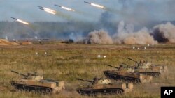 وزارت دفاع روسیه گفته است که در مشق و تمرین نظامیان آن کشور افزون بر پرتاب اسلحۀ سنگین از جت‌های جنگی و بم افگن، سیستم های دافع هوا و ضد طیاره و کشتی‌های جنگی در بحیرۀ سیاه و کسپین نیز کار گرفته شده است.