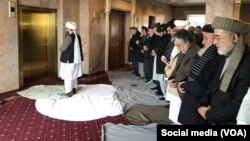 حامد کرزی و شماری از چهرههای شناخته شدۀ سیاسی افغان در یک هوتل در شهر مسکو، به امامت نمایندۀ طالب نماز خوانده و سپس گفتگوهای صلح را آغاز کردند.
