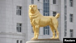 سال گذشته، حکومت ترکمستان بنایی از سگ الابای که پوشش طلا دارد را در یکی از چهارراه های مزدحم عشق آباد بنا کرد.
