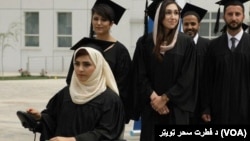 برشنا موسی زی، دوشیزۀ ۲۸ سالۀ افغان که یک پایش در نتیجۀ ویروس پولیو فلج شده و پای دیگرش به ضرب گلولۀ طالبان آسیب دیده بود، از پوهنتون امریکایی افغانستان به درجۀ لسانس، فارغ شد.