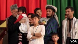 رئیس جمهور کرزی، در حالیکه یکی از این اطفال را به آغوش داشت گفت: "{این}دختر دلاور است، همرای برادران خود بزرگ می شود، و از راه، آوردن عزت و طرقی برای خاک خود، انتقام مردم افغانستان{را} می گیرد."