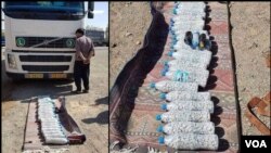 محب الله محب سخنگوی قوماندانی امنیه ولایت فراه به صدای آمریکا گفت این فرد که راننده یک موتر ترانزیتی است قصد داشت تا بیشتر از ۲۸ کیلوگرام مواد مخدر را که در بوتل های آب معدنی جاسازی کرده بود توسط یک تانکر تیل به کشور ایران انتقال دهد.