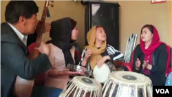 تعداد از مؤسسین این کورس، دخترانی اند که در زمستان گذشته در انستیتیوت ملی موسیقی افغانستان درکابل، نواختن موسیقی و آوازخوانی را یاد گرفته اند.