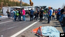 رسانه های محلی ترکیه گزارش داده اد که در اثر دو تصادم جداگانه روز شنبه ۲۰ اگست (۲۹ اسد) حداقل ۳۴ نفر کشته و دهها تن دیگر زخمی شدند.