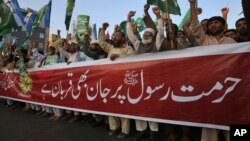 پس از آنکه هفتهنامهٔ شارلی ابدو فرانسوی یک بار دیگر کارتونهای منسوب به پیامبر اسلام را نشر کرد، اعتراض کنندگان خشمگین در پاکستان خواستار اخراج سفیر فرانسه از اسلام آباد شدند.