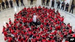 پس از نیم ساعت سر دادن شعارها، نیروهای پولیس کانگرس چندین بار هشدار صادر کردند و به تعقیب آن معترضان را دستگیر و یک به یک آنان را از مقابل دفتر کانگرس ایالات متحده دور بردند.