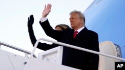 هنگام عزیمت آقای ترمپ، مراسم تودیعی در پایگاه هوایی اندرو در ایالت مریلند با تشریفات نظامی با حضور اعضای خانوادۀ ترمپ و شمار اندکی از مهمانان برگزار شده بود.