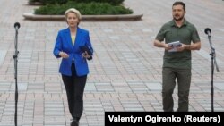 اورسلا فون درلاین، رییس کمیسیون اتحادیه اروپا روز پنجشنبه ۱۵ سپتمبر (۲۴ سنبله) از کیف دیدار کرد تا نقشهراهی را برای پیوستن این کشور به اتحادیه اروپا تهیه کند.