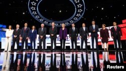 این مناظرۀ تلویزیونی، سه شنبه شب (١٥ اکتوبر) در ایالت اوهایو برگزار شد و در آن ١٢ کاندید حزب دموکرات اشتراک کرده بودند.