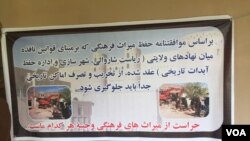 انجمن حامیان میراثهای فرهنگی هرات در ارتباط به تخریب خودسرانه شماری از بناهای باستانی این ولایت از سوی شاروالی هرات، اعتراض کرده ادعا دارند که این اقدام باعث شده تا بافت تاریخی شهر قدیم این ولایت برهم خورد و امیدواریهای آنها برای شمولیت در لیست میراثهای فرهنگی جهان در سازمان یونسکو تقلیل یابد.