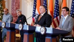 وزیر دفاع ایالات متحده امروز ۲۶ اکتوبر (پنجم عقرب) با مایک پمپیو، وزیرخارجهٔ ایالات متحده به هند رسیدند.