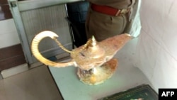 مقامات در هند میگویند دو مردی را بازداشت کرده اند که یک چراغ علاءالدین را مبلغ هفت میلیون روپیه (۹۳ هزار دالر) به یک داکتر به فروش رسانیده بودند.