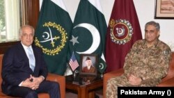 زلمی خلیلزاد، نمایندۀ ویژۀ ایالات متحده در امور مصالحۀ افغانستان و سکات میلر، قوماندان ماموریت حمایت قاطع ناتو در دیدار با قمر جاوید باجوه، لوی درستیز اردوی پاکستان در مورد روند صلح افغانستان صحبت کردند.