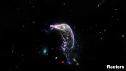 تلسکوپ فضایی جیمز وب ادارهٔ ملی فضایی ایالات متحده (ناسا)، در تازهترین کنکاش خود با استفاده از نور مادون قرمز، تصاویر دو کهکشانی را فرستاده که در حال ادغام در یکدیگر اند.
