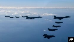صدها طیارهٔ جنگی ایالات متحده و کوریای جنوبی هفتهٔ گذشته در مانور هوایی موسوم به ''طوفان هوشیار" در شبهٔ جزیرهٔ کوریا سهم گرفتند، به شمول بمافگنهای B-1B.