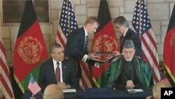 قرار بود که مراسم امضای توافقنامه همکاری های ستراتیژیک افغانستان و امریکا در قصر سفید صورت گیرد، اما بنابر درخواست ”عاجزانه“ حامد کرزی، رئیس جمهور افغانستان، این کار در ارگ کابل انجام یافت.