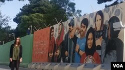خانم لندن میگوید"با وجودیکه مشکلات موجود است، اما امیدواری ها و نکات مثبت متعددی نیز است. ما خواستیم چهره های برخی از خبرنگاران، هنرمندان و ورزشکاران را بخاطر فعالیت های آنان روی دیوار سفارت نقاشی کنیم."