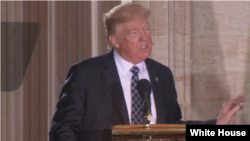 آقای ترمپ خطاب به گروههای دهشت افگنی که بر جوامع یهودی می کنند یا کسانیکه اسرائیل را به محو کامل تهدید می کند، پیام واضح داد و گفت "پیام من برای شما این است: ما در برابر یهود ستیزی، مقابله می کنیم."
