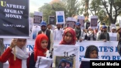 صدها نفر روز جمعه ۲۴ سپتمبر (دوم میزان) در شهر کابل دست به تظاهرات زده و خواستار رهایی میلیاردها دالر پول بانک مرکزی افغانستان که در بانک ذخایر فدرال شهر نیویارک نگهداری میشود،شدند.