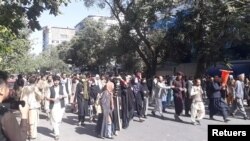 دهها نفر در کابل امروز ۲۸ اگست (ششم سنبله) در اعتراض به مسدود بودن بانکها و صرافیها در جادههای این شهر صدا بلند کردند.