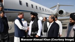 امیرخان متقی، وزیر خارجه اداره طالبان از آقای قریشی در میدان هوایی کابل استقبال کرد.