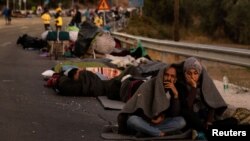 هزاران پناهجوی سرگردان و بی سرپناه در جزیرۀ لسبوس یونان پس از آن دو شبانه روز گذشته را در کنار جاده سپری کردند که کمپ آنان روز سه شنبه در آتش سوخت.