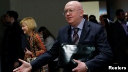 آقای نبینزیا روز پنجشنبه پس از پایان جلسه شورای امنیت ملل متحد که پشت در های بسته برگزار شد، همچنین از ایالات متحده خواست تا از اقدام نظامی در سوریه خوداری کند.