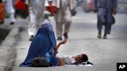 زرمینه، یکی از زنان گدا در غرب کابل، به صدای امریکا گفت که شوهرش معلول است و توانایی کار را ندارد و یک پسرش که در اردو بود، سه سال پیش در جریان نبرد با طالبان در هلمند کشته شد.