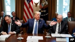رئیس جمهور ترمپ کهبه روز سه شنبه (١٦جولای) در جلسۀ کابینه حکومت خود صحبت میکرد، گفت خواستار تغیر رژیم در ایران نیست، زیرا به گفته او تغیر رژیم کارا نخواهد بود.