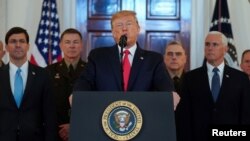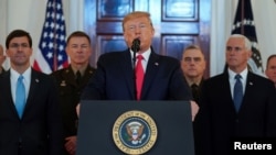 سخنرانی آقای ترمپ در واکنش به پرتاب میزایلهای بالستیکی از سوی ایران بر پایگاههای نظامی امریکا در عراق بود. ایران گفته است که این حملات را در انتقامجویی از کشته شدن قاسم سلیمانی در حملات هوایی نظامیان امریکایی در عراق انجام داده است.