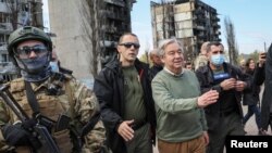 انتونیو گوتیرش، منشی عمومی ملل متحد روز پنج شنبه ۲۸ اپریل (هشتم ثور) پس از ورود به اوکراین گفت که می‌خواهد "حمایت بشردوستانه را گسترش و تخلیه غیرنظامیان از مناطق درگیر جنگ" را تضمین کند؛ موضوعاتی که او در اوایل این هفته با ولادیمیر پوتین، رییس‌جمهور روسیه و سرگی لاوروف، وزیر خارجه روسیه در مسکو روی آن بحث کرده بود.