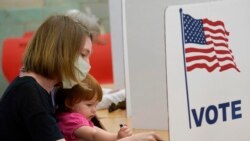 حضور زن جوانی همراه با کودک ۱۷ ماهه اش در یکی از مراکز رایدهی در ایالت میسیسیپی