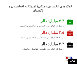 وزارت خارجۀ ایالات متحده در طرح بودجۀ سال مالی ۲۰۱۷ اش، برای برآورده شدن تعهدات این کشور در برابر افغانستان و پاکستان، خواستار ۳،۴ میلیارد دالر شده است، که نسبت به سابق، افزایش قابل ملاحظه را نشان میدهد. در سال مالی ۲۰۱۵، در عین بخش، ۲،۵ میلیارد دالر، و در سال مالی ۲۰۱۶ در همین بخش ۲،۳ میلیارد دالر تقاضا شده بود.