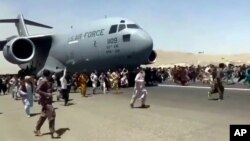 اما در آن روز صدها غیرنظامی افغان در تلاش برای بیرون شدن از کابل وارد میدان هوایی شده و آزادانه در اطراف ترمینل و خط پرواز گشت و گذار میکردند.