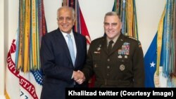 زلمی خلیلزاد، نمایندۀ ویژه ایالات متحده در امور مصالحه افغانستان با جنرال مارک میلی، لوی‌ درستیز قوای مسلح امریکا دربارۀ افغانستان بحث و گفتگو کرده است.