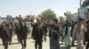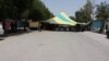 شماری از شهروندان کندز برای رهایی یک کودک ربودهشده و افزایش ناامنی، در مقابل دروازۀ دفتر والی کندز، خیمۀ تحصن برپا کرده اند.